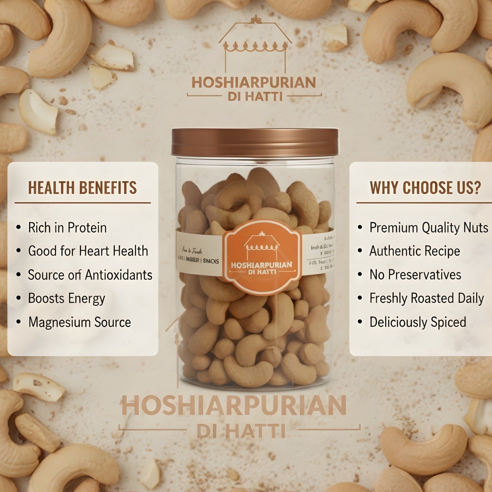 - Crispy & Crunchy: A combination of roasted cashews and crispy green peas for a satisfying bite.